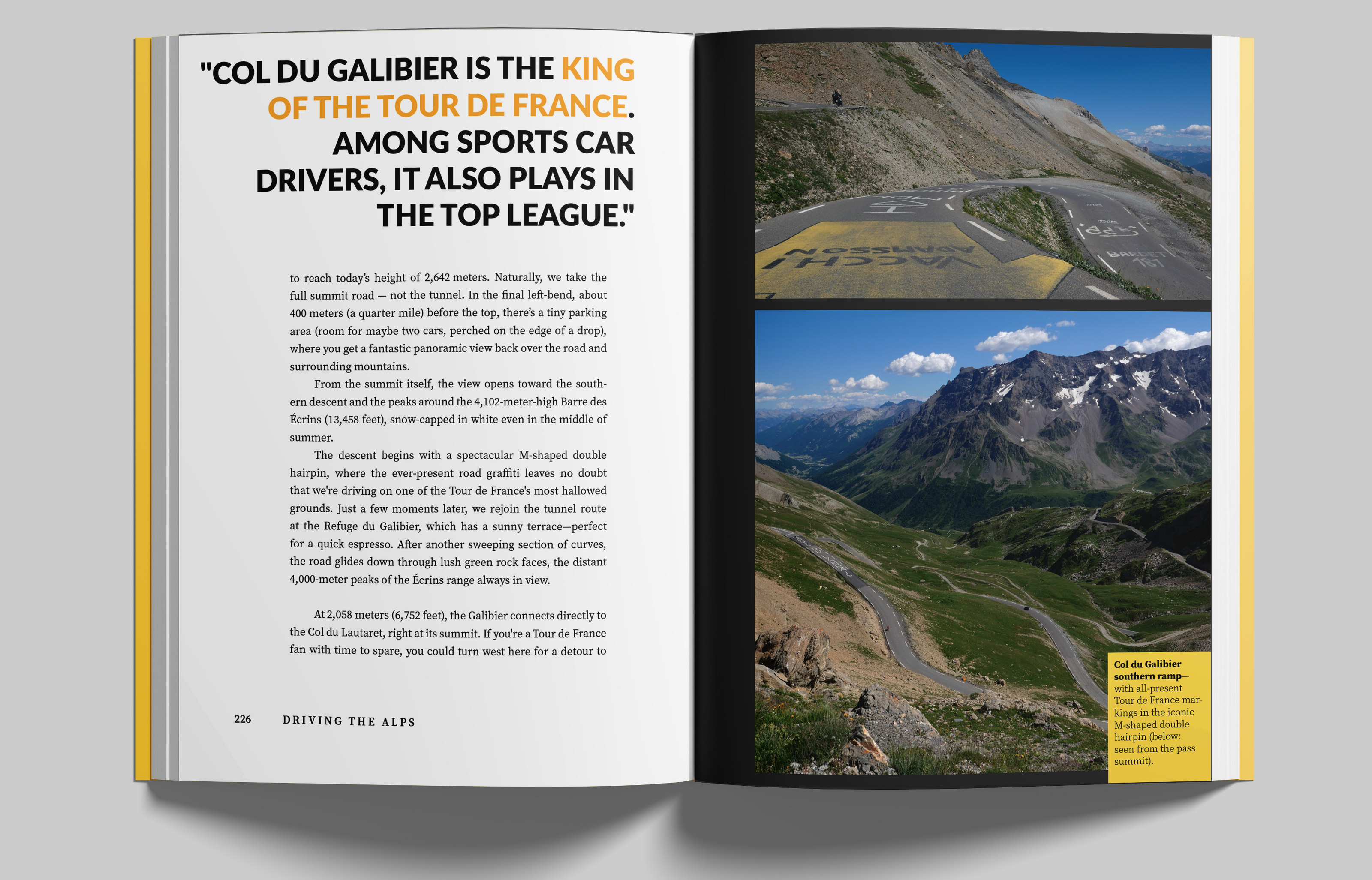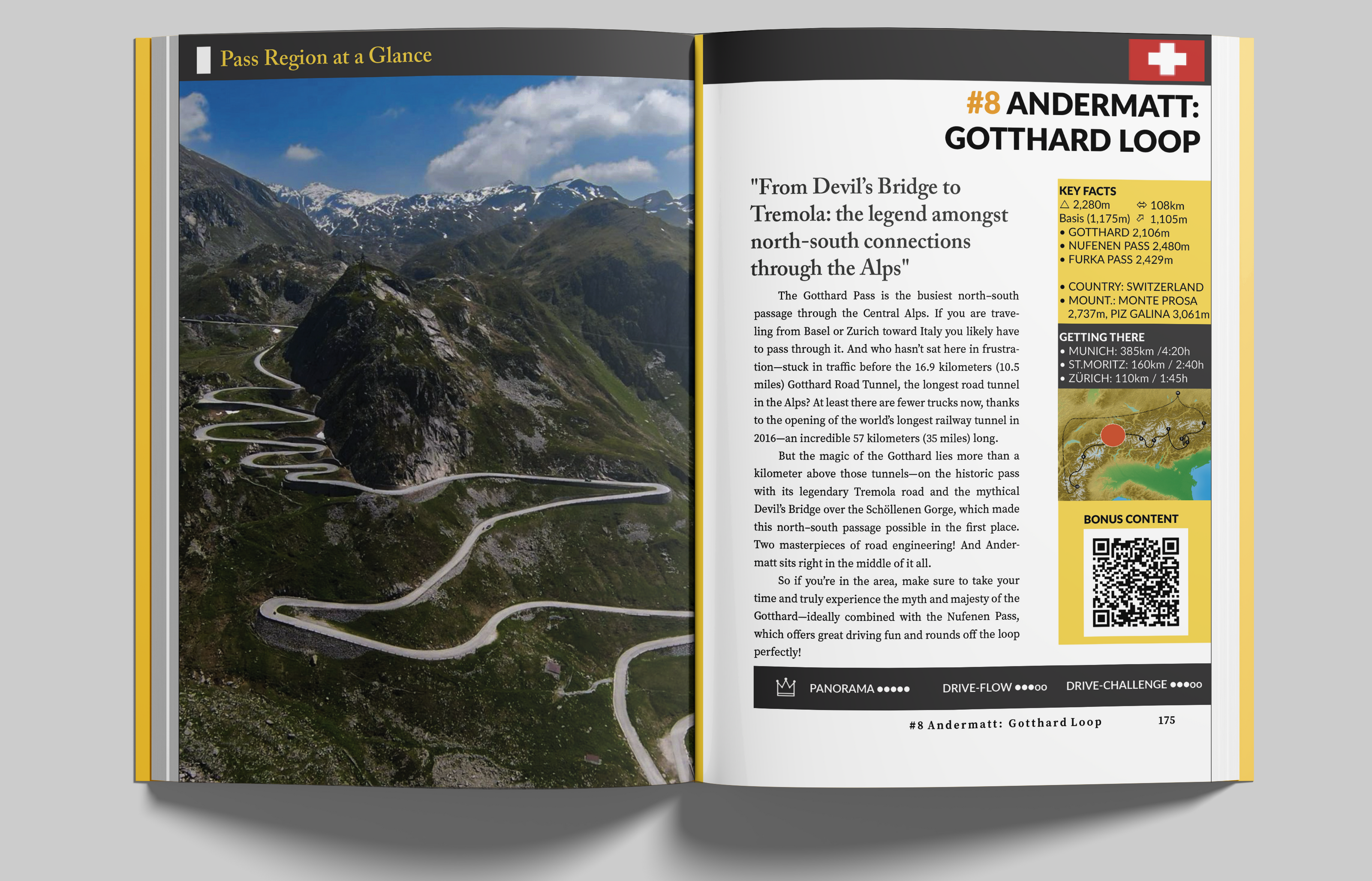 "Driving the Alps" gives you the complete bucket list of Alpine passes in a single book: Stelvio, Grossglockner, Timmelsjoch, Dolomites. Best of Switzerland – from Graubünden to the legendary passes around Andermatt, where James Bond once faced Goldfinger. The Tour de France giants of the Grandes Alpes. The Champions League of the Alps!